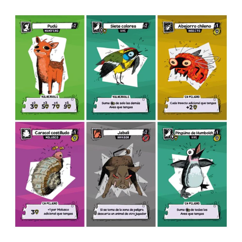 En Rescate Animal te unes a una causa noble: rescatar especies de la fauna chilena en peligro. En cada partida explorarás, descubrirás y tratarás de salvar animales, formando tu propio “ecosistema” personal de criaturas rescatadas. Debes decidir cuándo rescatar, cuándo conservar tus puntos, y cuándo arriesgarte a descubrir nuevas especies — siempre cuidando de que no terminen en la “zona de peligro”. Al final, gana quien haya acumulado más puntos de conservación, demostrando que sabe proteger la naturaleza mejor que nadie.